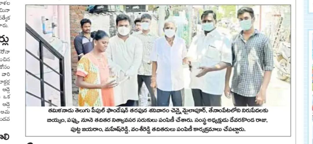TNTPF‘s prime objective is to save our mother tongue. Many Telugu people living in Tamil Nadu are discriminated in sectors like education and getting basic amenities. TNTPF volunteers will identify the poor people who are living below the poverty line and ensure them a comfortable living.