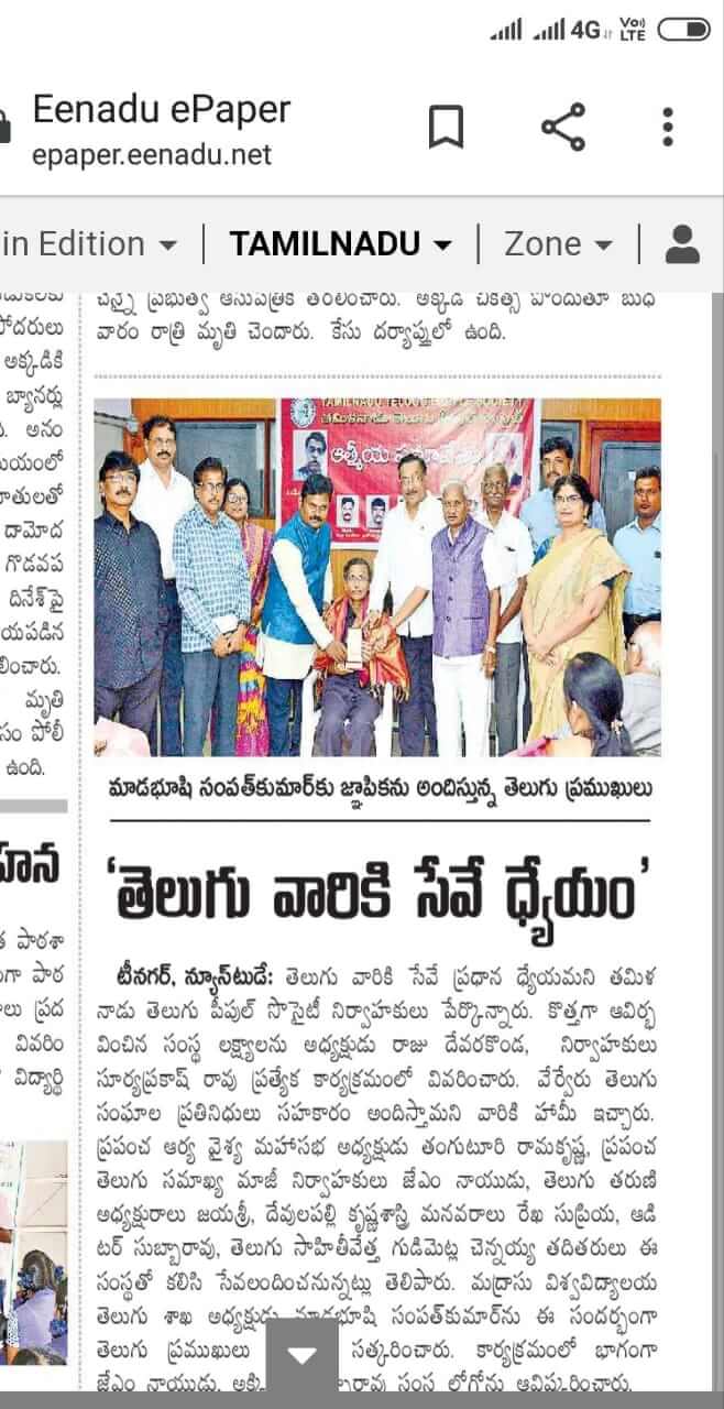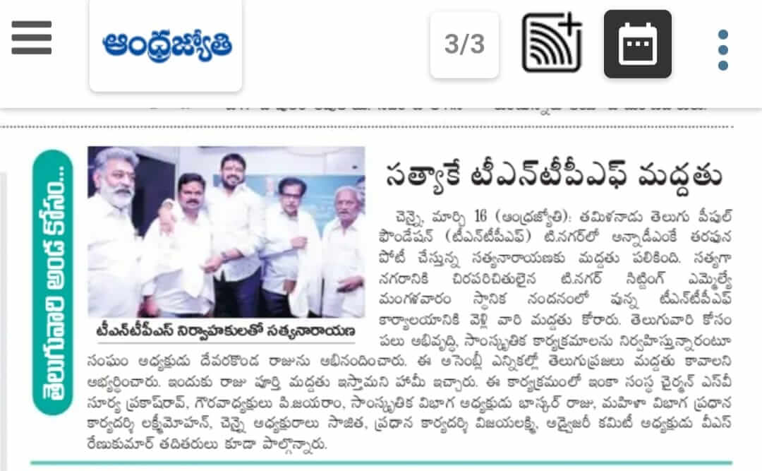 Mr Devarakonda Raju is the founder chairman of TNTPF. He is a philanthropist and social activist. He took initiative to help Telugu people even during the Chennai floods and the lockdown clamped to contain Corona pandemic. We need to strengthen his hands by joining together and uphold Telugu’s pride.