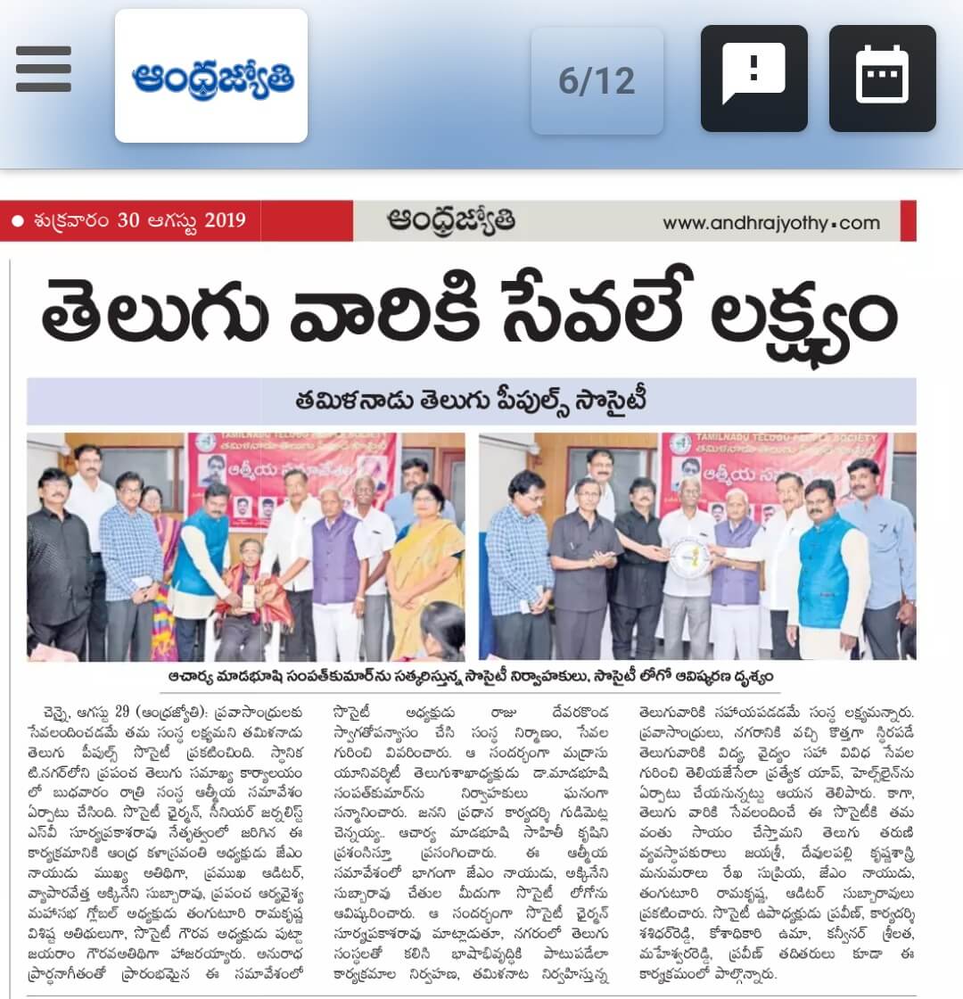 TNTPF has a long vision to unite Telugu people across Tamil Nadu. As part of its endeavour, it has developed a volunteers’ network to take up welfare activities and organize cultural and literary events. The Foundation strives for developing platforms in social, cultural and political spheres.